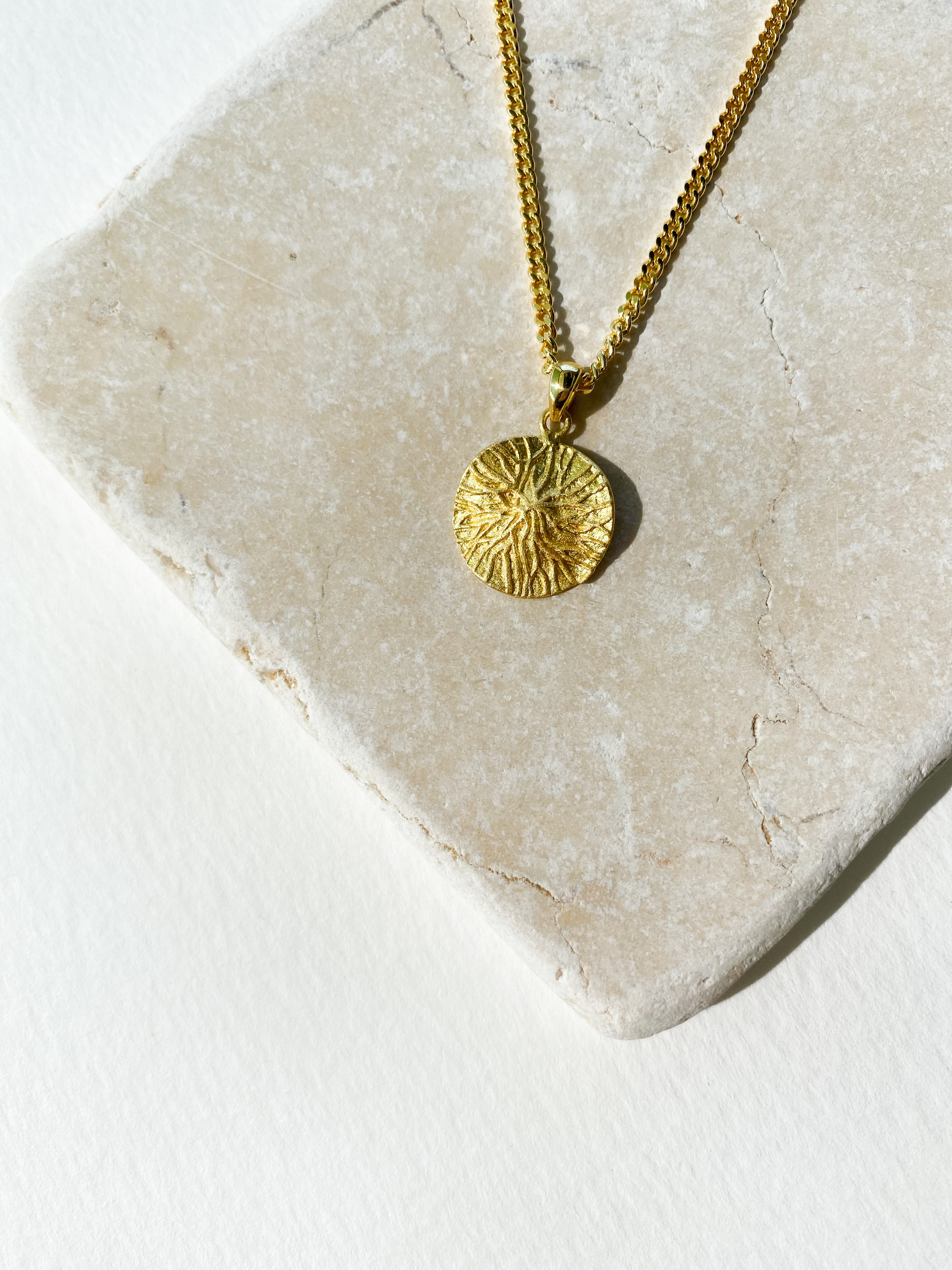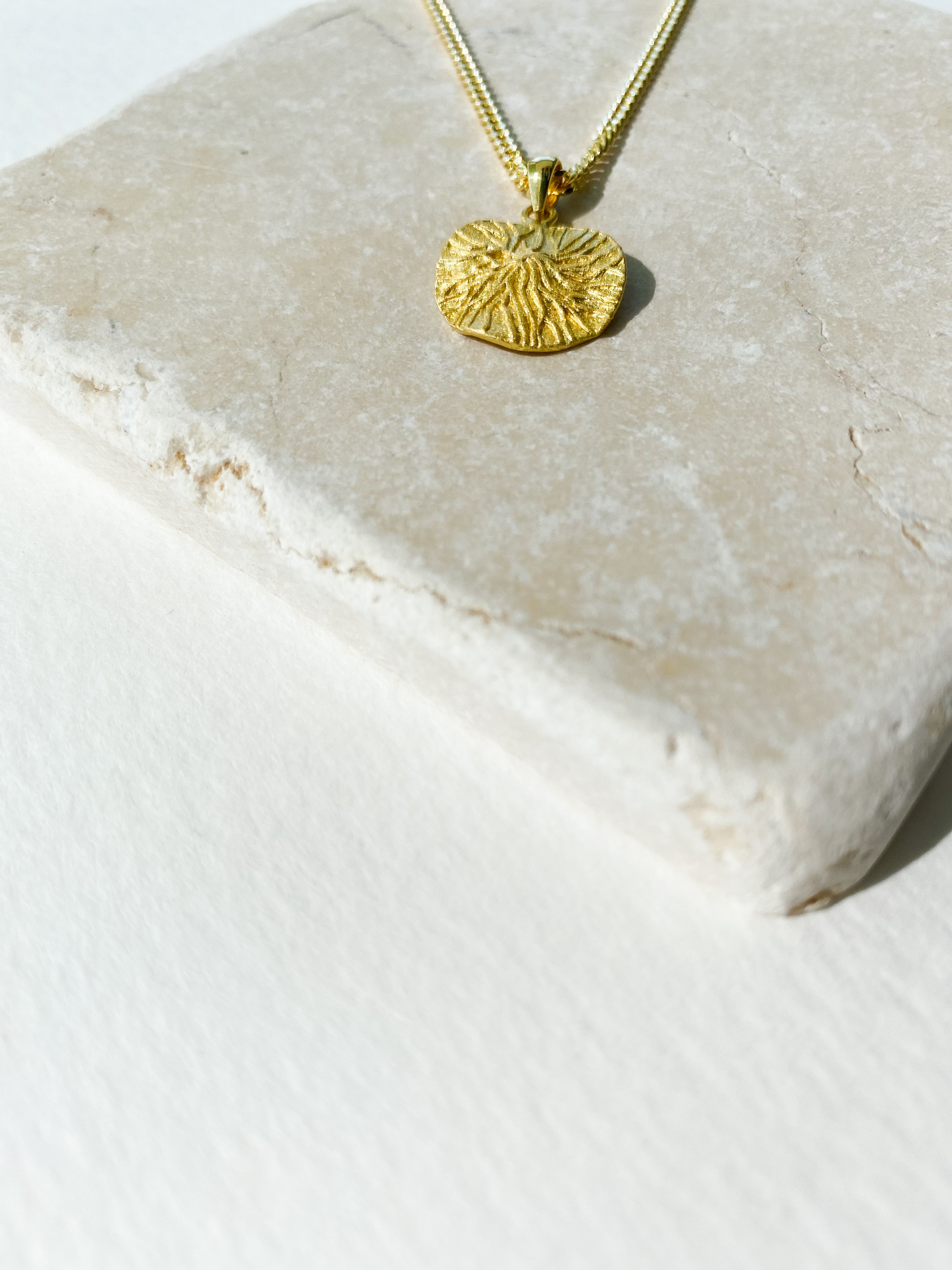 Die AKELA Panzer Halskette mit dem Amulett besteht aus 925 sterling Silber matt vergoldet und kann auf beiden Seiten getragen werden.
