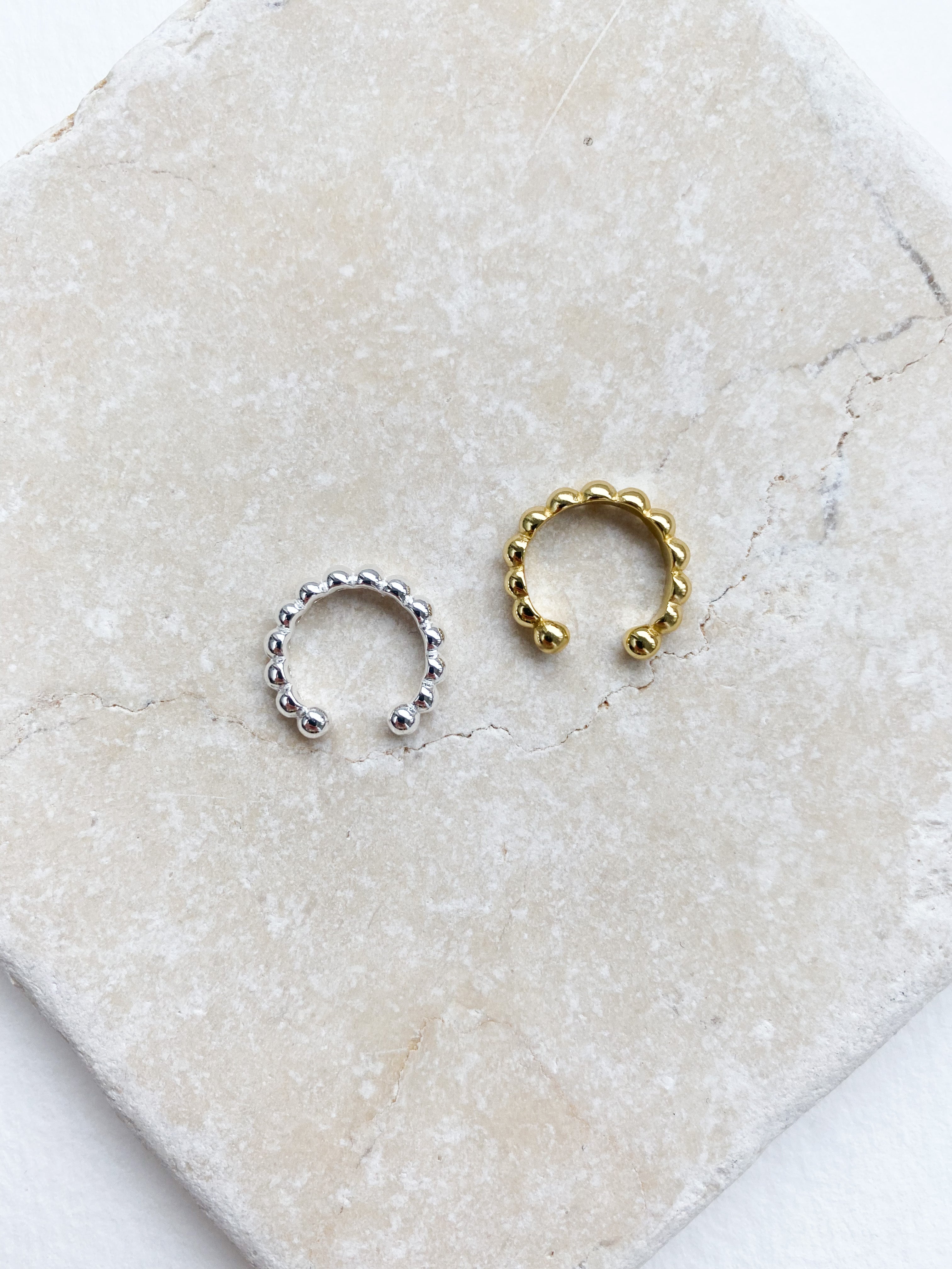 Die EAR CUFFS bestehen aus 925 sterling Silber und sind in drei unterschiedlichen Varianten erhältlich. Schlicht, elegant mit feinen Punkten oder mit Zirkonien besetzt.