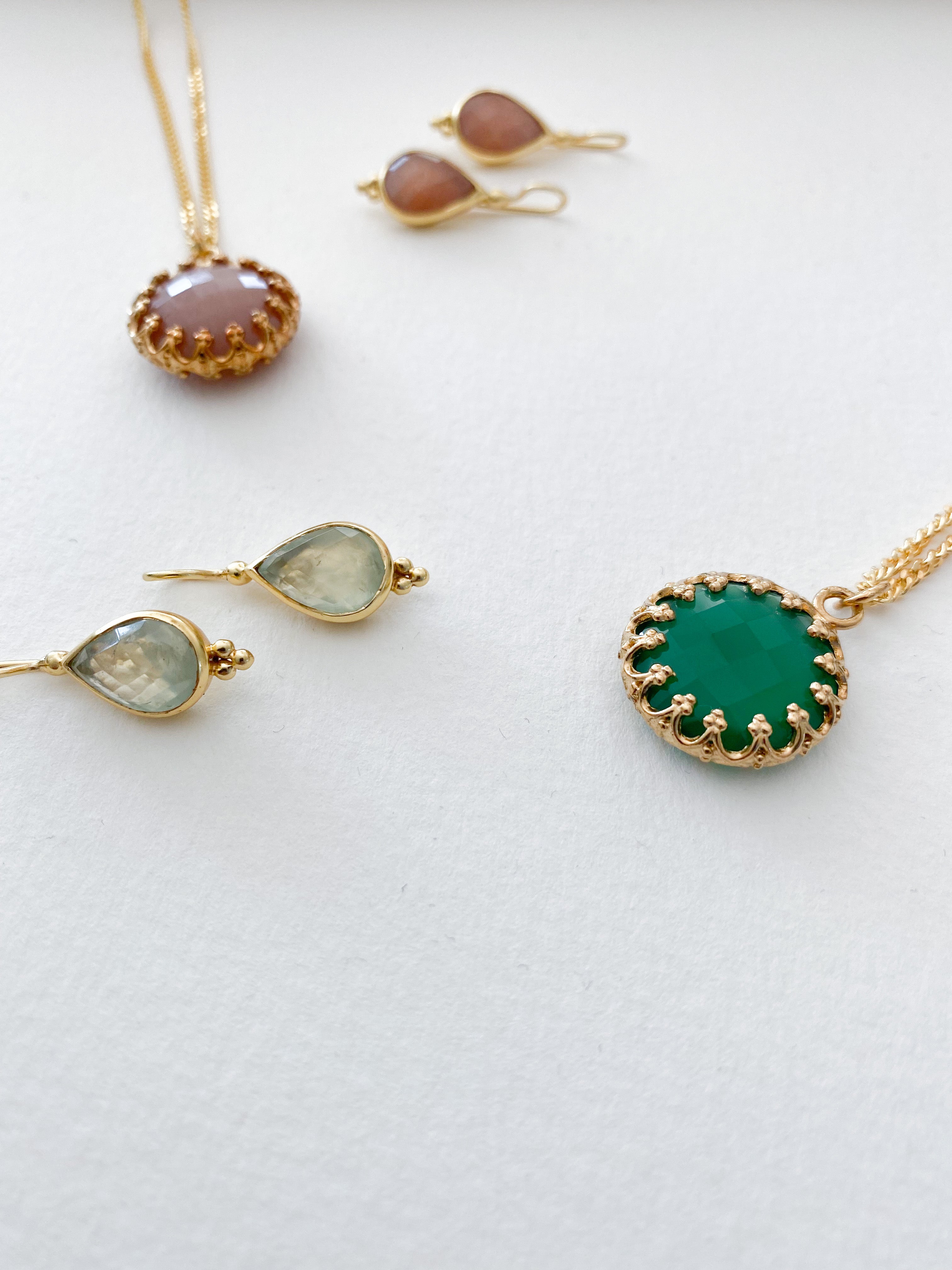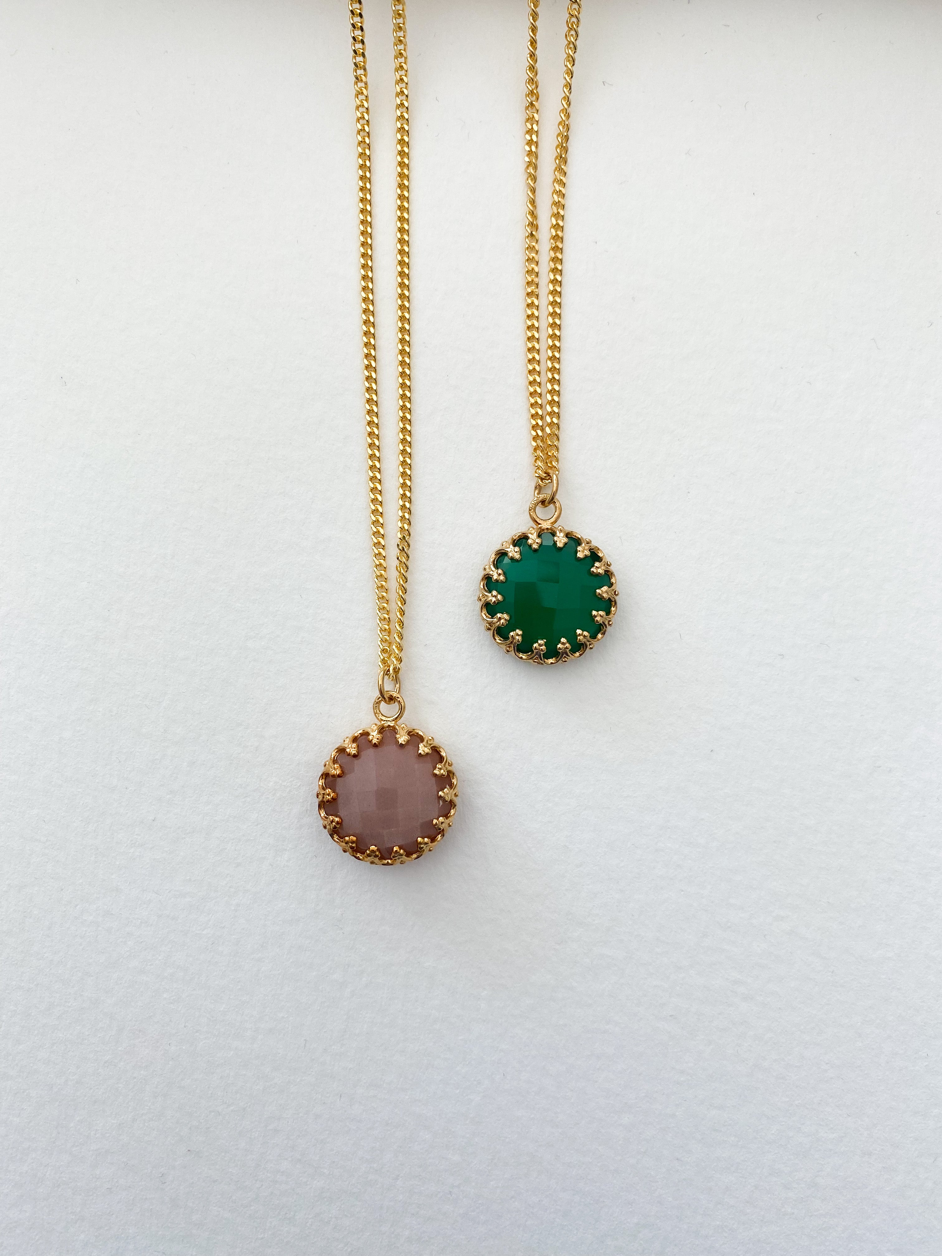 Varianten: Achat grün od. Mondstein Zimt, 20mmKettenlänge: 45 oder 50cm