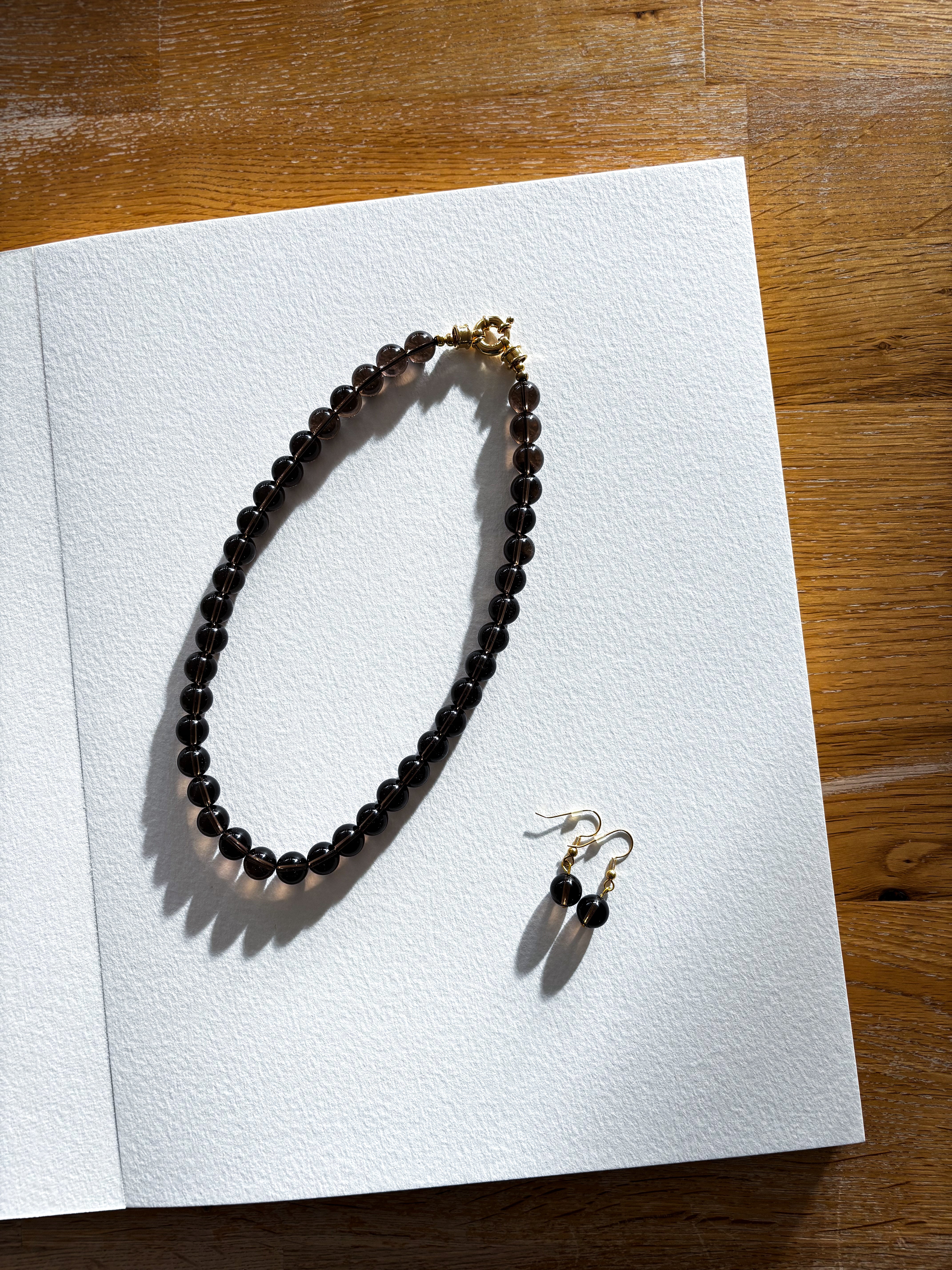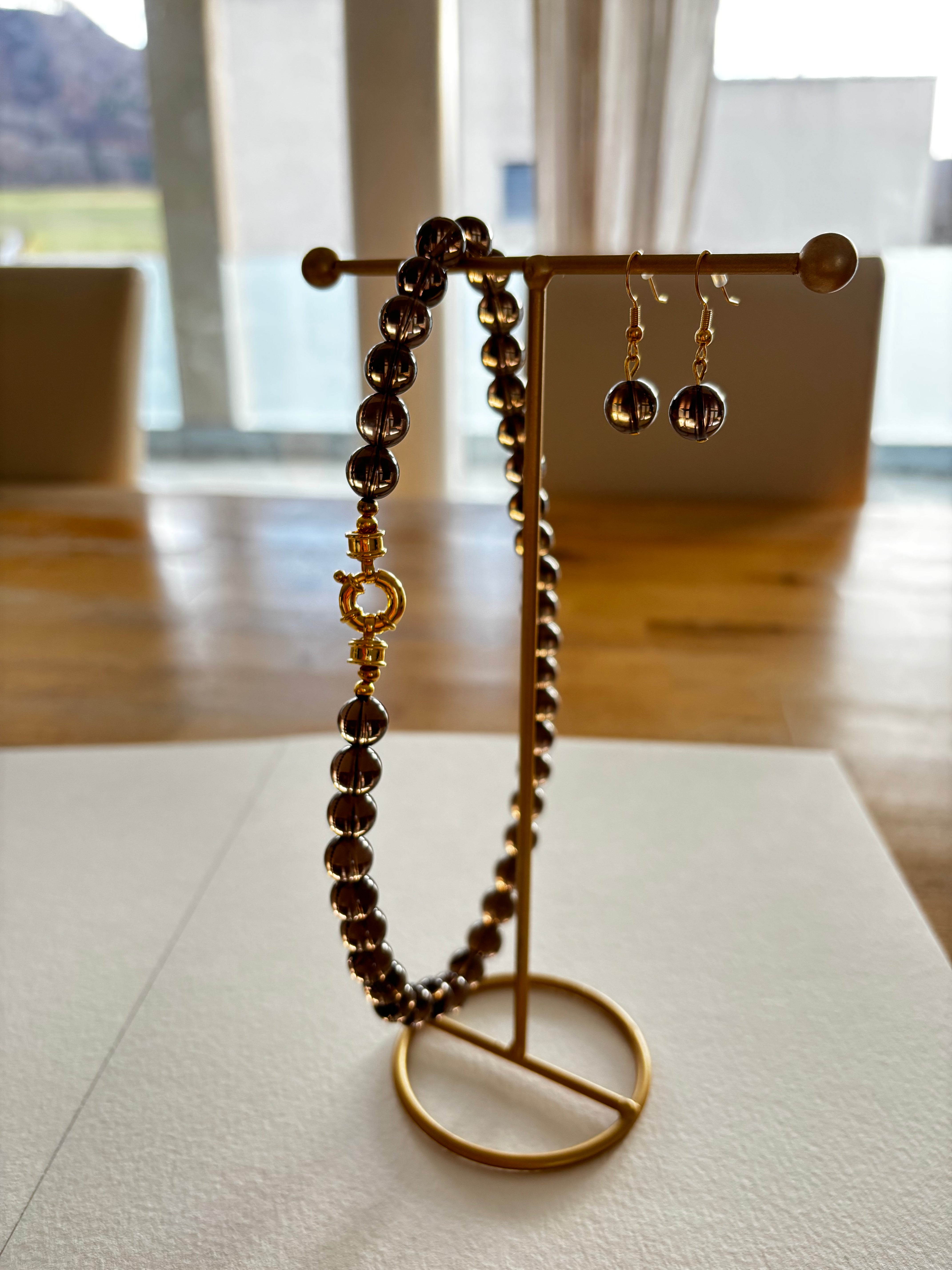 🤎 Rauchquarz - Bringt Stabilität, Schutz und innere Klarheit in dein Leben mit dieser eleganten Rauchquarz Halskette und den passensen Ohrhänger. Der Rauchquarz gilt seit Jahrhunderten als starker Schutzstein, der negative Energien abwehrt und dir hilft, Stress, Sorgen, innere Blockaden und negative Gedanken loszulassen.