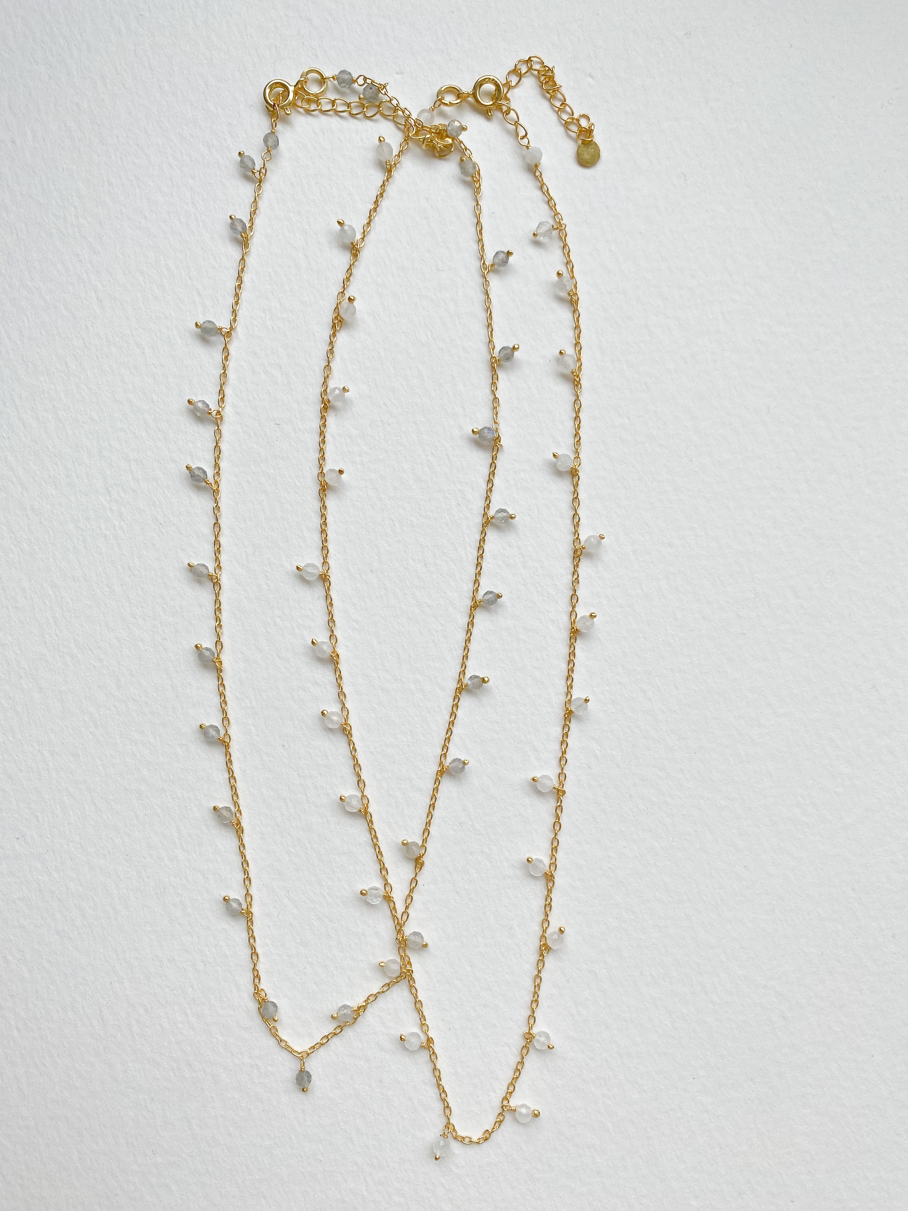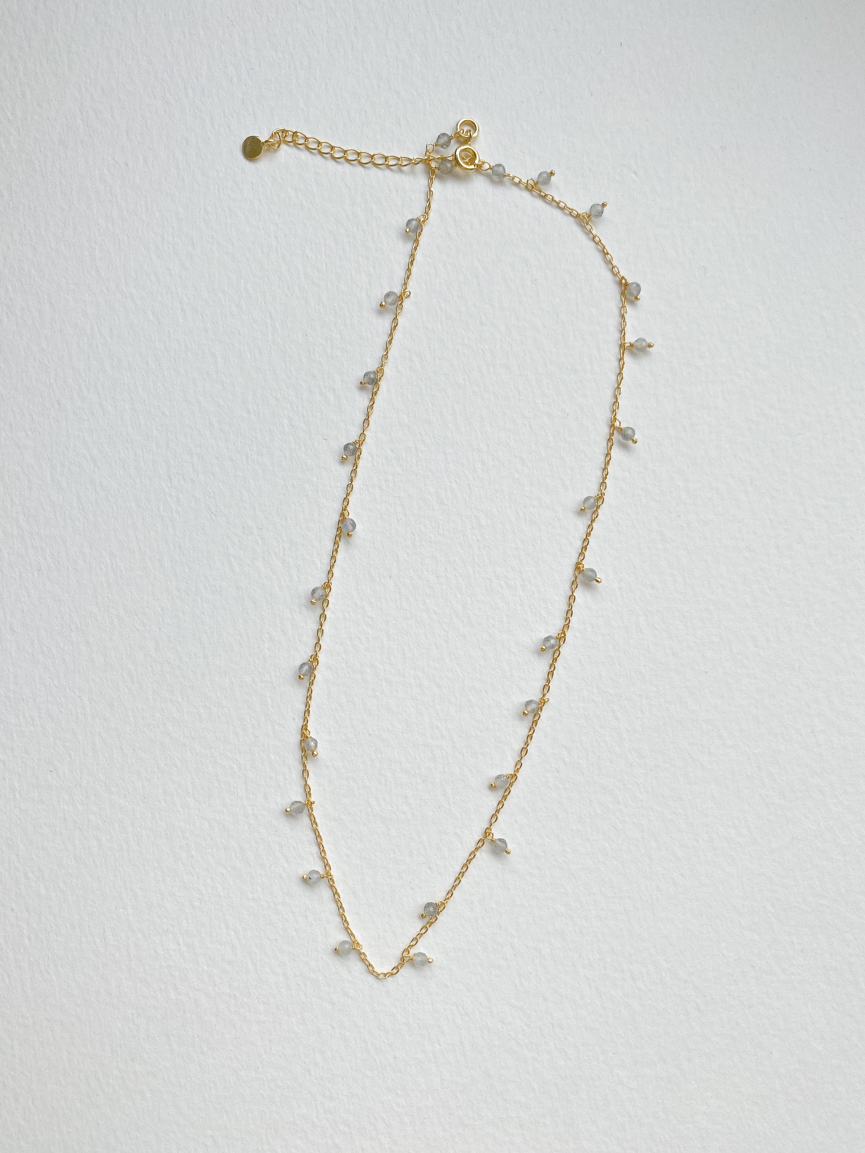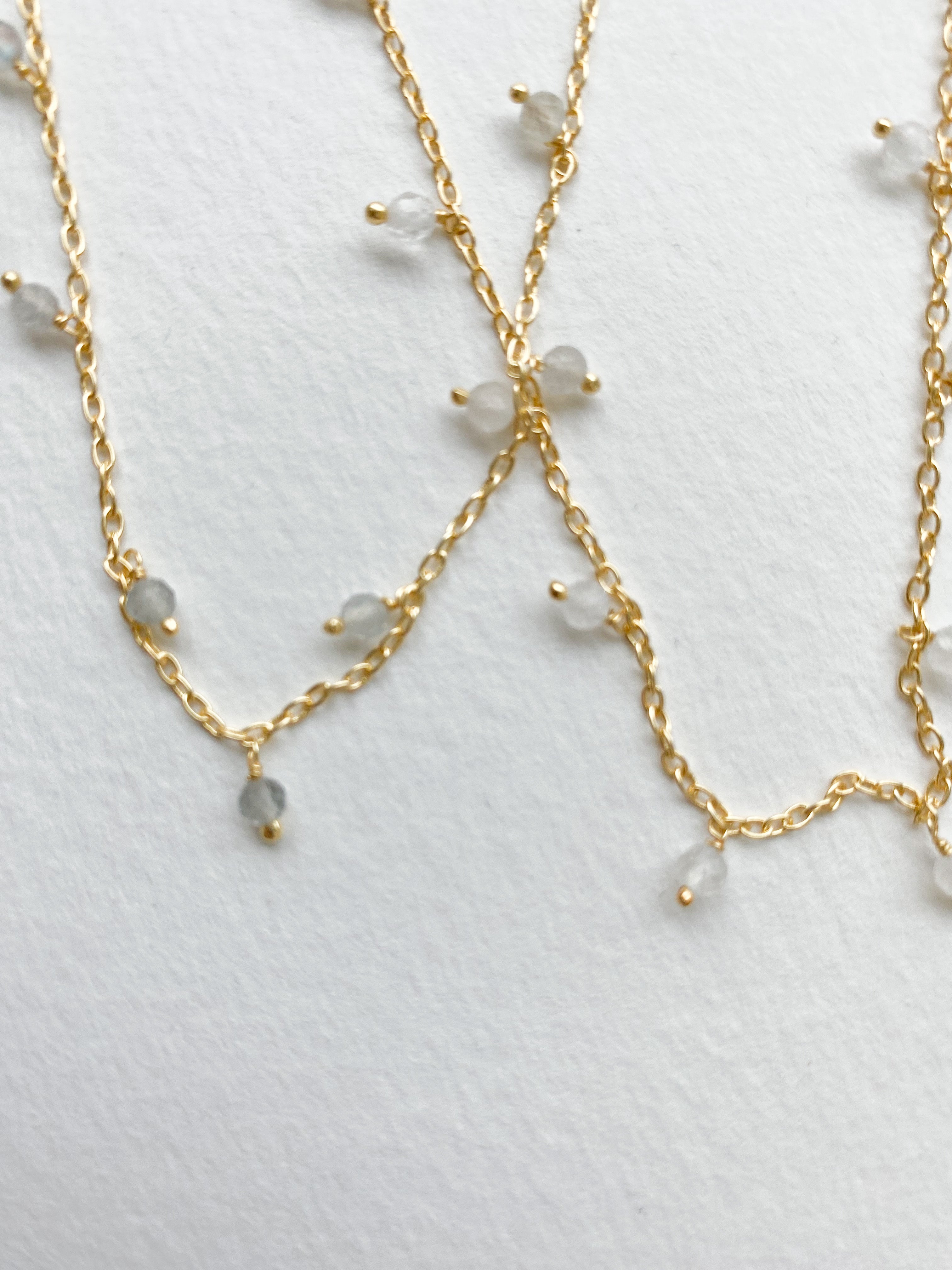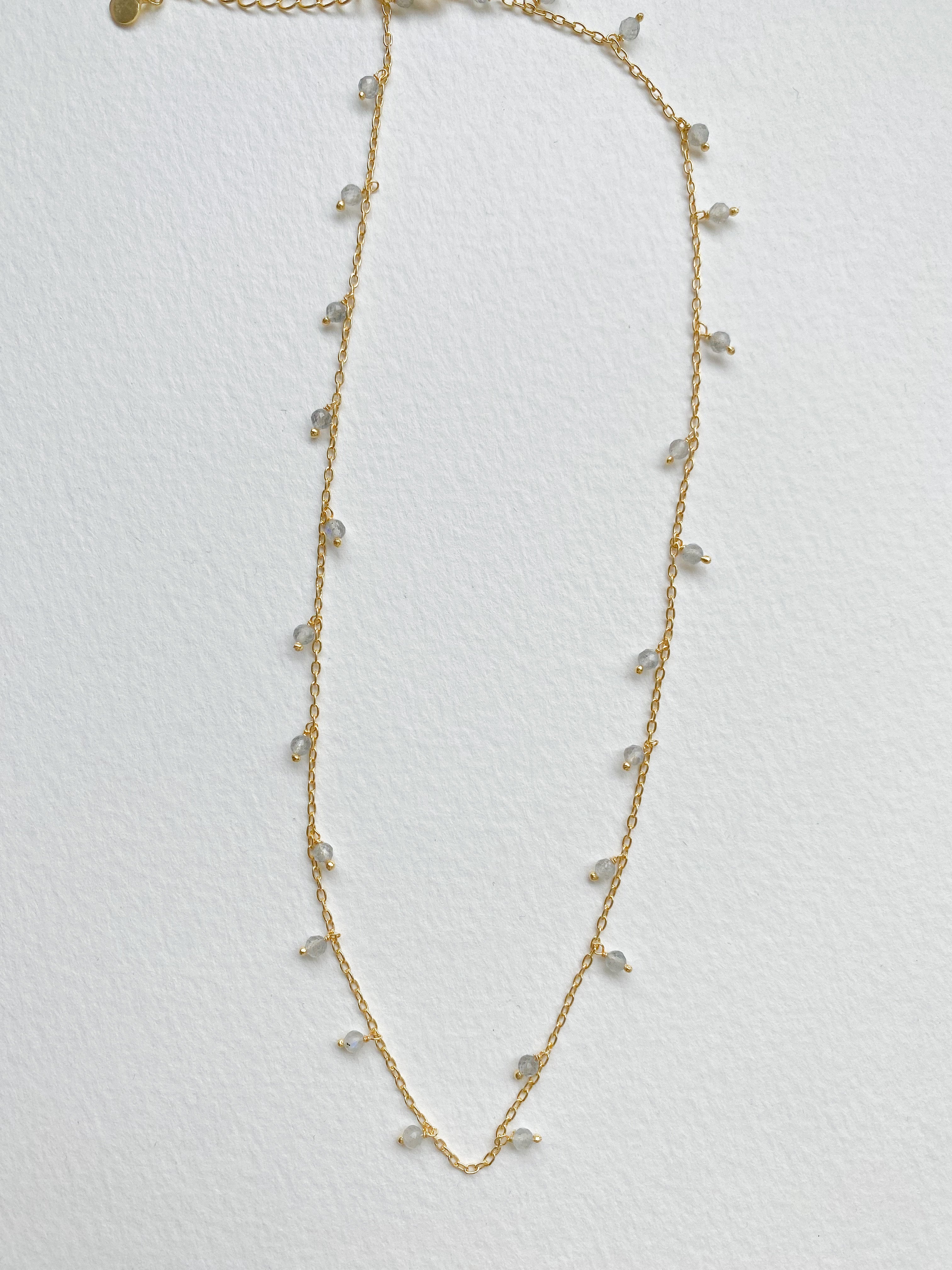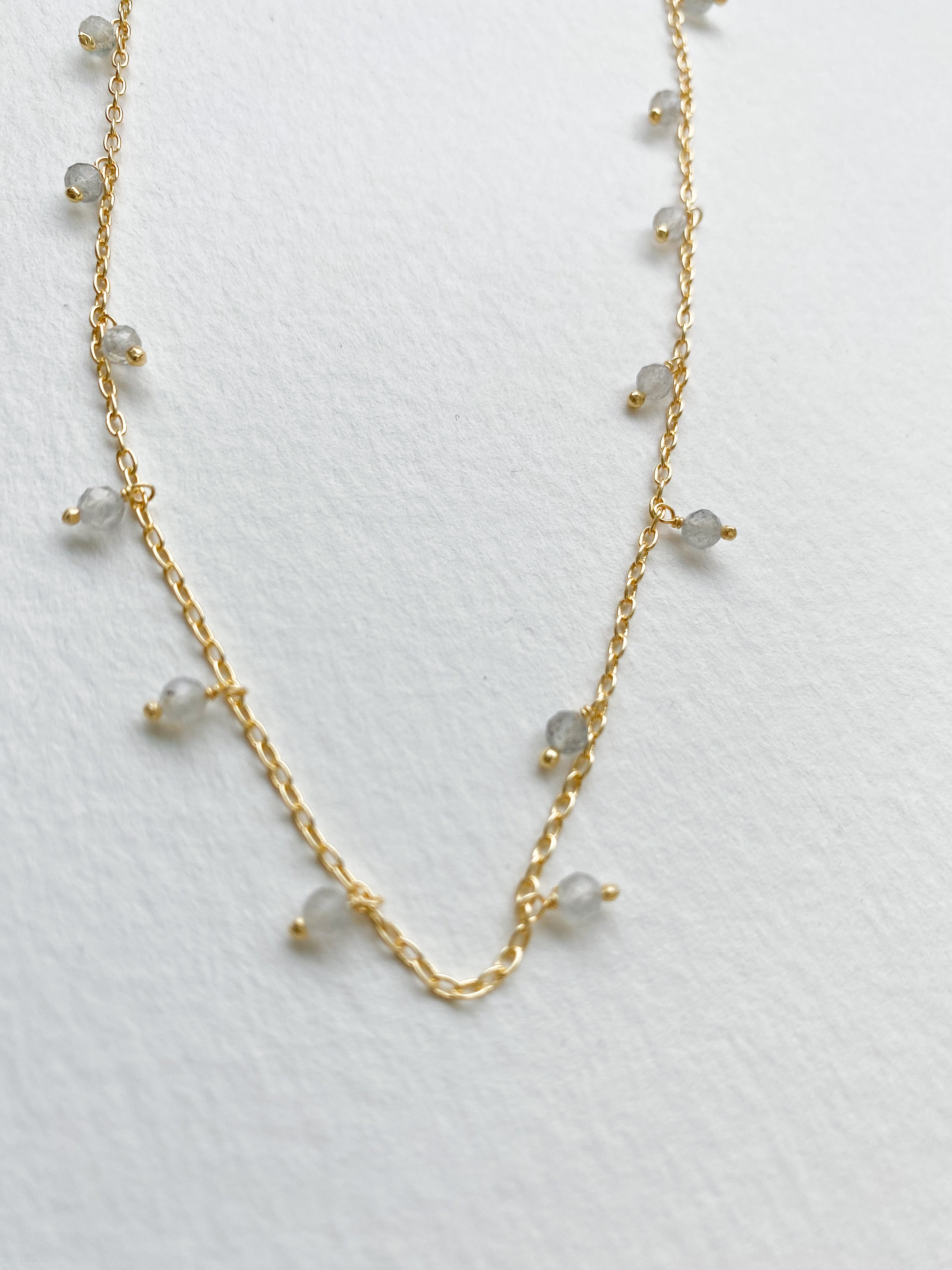 Edelsteine: facettierter Labradorit oder Regenbogen MondsteinAnhängergrösse: 3mmKettenlänge: 42.5 - 47cm